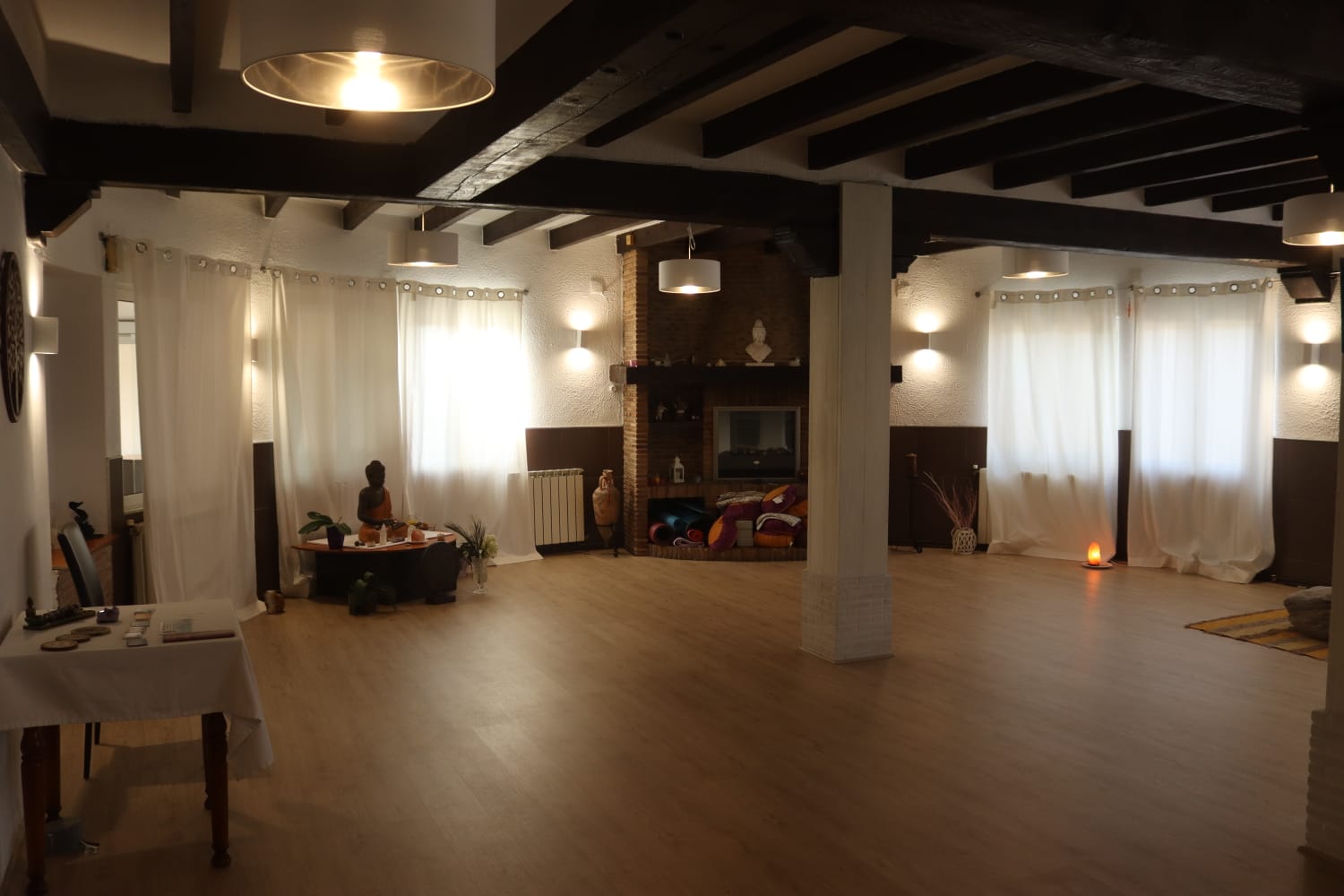 Sala de Yoga con capacidad para 15 personas. Ambiente cáido, luz natural.
